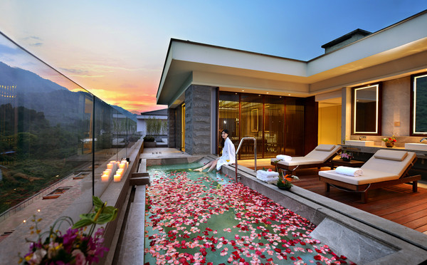 在峨眉山下享一段室外温泉时光