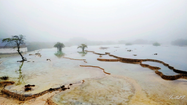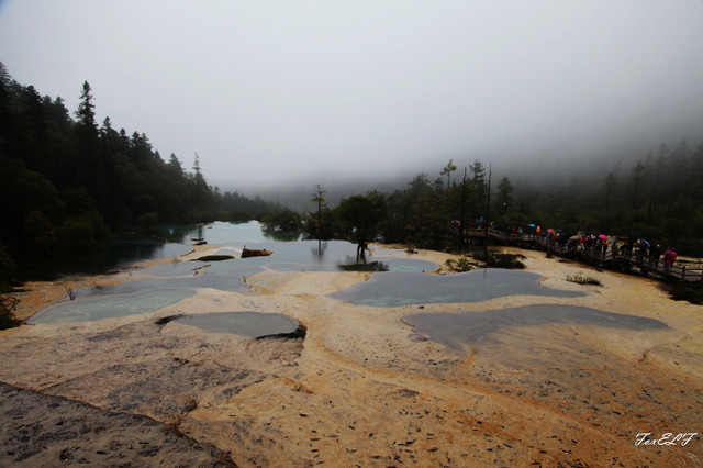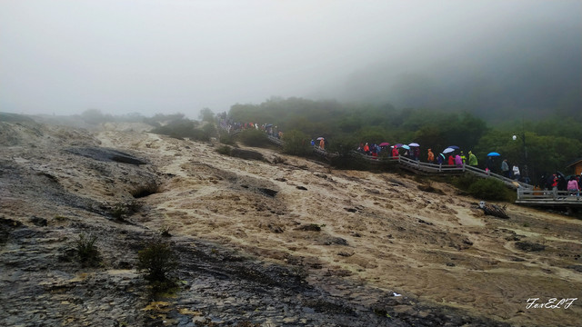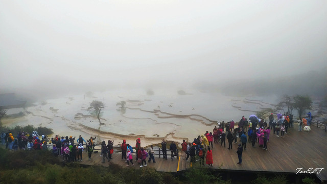 参照网上的游记,五彩池的两侧应该都能走,可能因为天气,只开放了一边,这边两条路,可先从贴近五彩池的近观景台观赏,然后上山,从较高的观景台再看五彩池全景,当然有雾就白茫茫一片了。