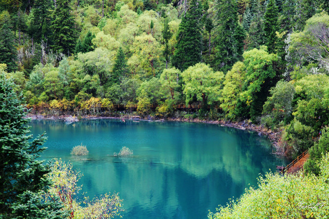 五花海海拔2472米,水深5米,面积9万平方米,被誉为“九寨沟一绝”和“九寨精华”,在珍珠滩瀑布之上,熊猫湖的下部于日则沟孔雀河上游的尽头。一个湖泊,被大自然调和成五彩绚丽的靓景,那是人工永远无法缔造的一道壮观景象。