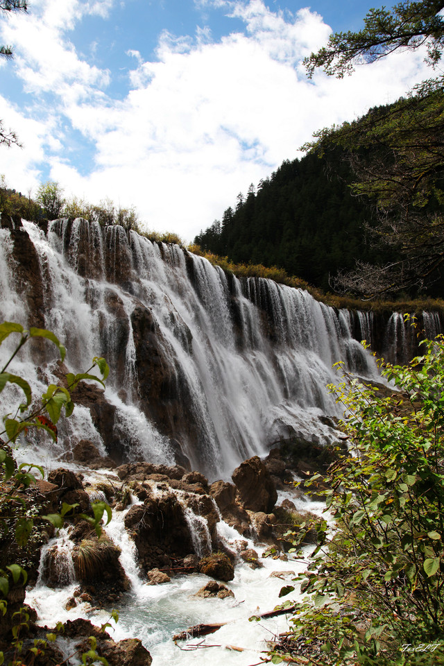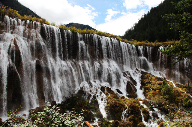 树正瀑布位于四川九寨沟风景名胜区树正沟中,他是入沟见到的第一个瀑布,也是九寨沟四大瀑布中最小的一个。树正瀑布是由首尾相接的众多飞瀑组成,水大势猛,犹如千军万马鼓摇旌,吼声如雷。堤埂上耸立着丛丛高原特有的灌木,扎根于水底,傲立于激流,长年经受流水的冲击而不倒不腐,风姿绰约,形成特殊的植物群落和世间罕见的自然奇观。树正瀑布在树正寨前的公路旁,是入沟见到的第一个瀑布,也是九寨沟四大瀑布中最小的一个。虽然最小,但也能让初游九寨沟的人惊心动魄。树正瀑布海拔2295米,高25米,瀑顶宽72米,是无名海水沿湖堤奔突,被水中树丛分成数以千计的水束汇集到树正瀑顶。
