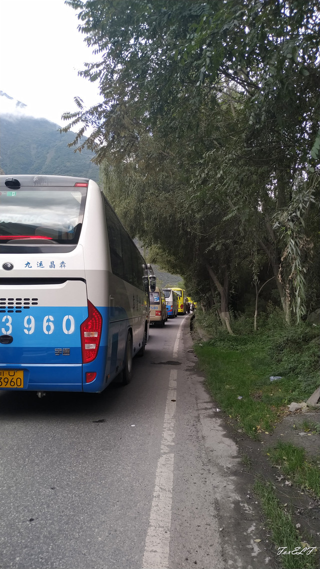第一天,楼主从松潘到九寨沟大概两小时盘山路车程,容易晕车的要做好预防,8点左右出发,10点左右到,正好躲开了上山的大部队,没有在景区入口遇上拥挤人群。第二天,早上9点在左右到的,一行人挤入大部队,感受“人山人海”。后来听说第一天发生了拥挤推搡,把维持秩序的栏杆都推倒了,所以第二天维持秩序的还有加入了武警的力量。