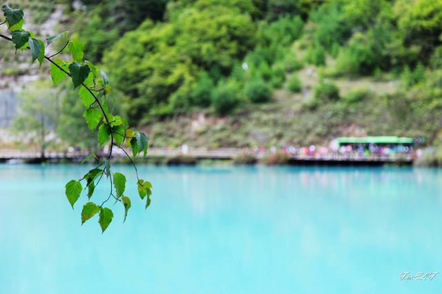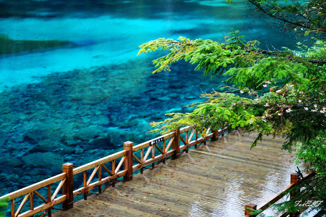 从五花海前往珍珠滩的栈道,回身还可以看到自然和人留下的风景。