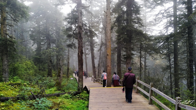通往五彩池的路边,雾飘在山中,所以一直都有一种行走在云中的感受。