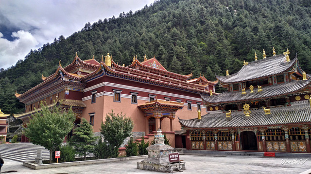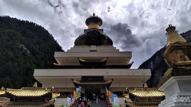 扎如寺坐落于扎如马道中途,一片占地颇大的苹果园中,是九寨沟附近最大、最有名气的喇嘛庙,也是苯教信仰者的一方圣地。藏语称为“然悟贡巴”,始建于明朝末年,经历过两次翻修,具有浓厚藏族寺庙色彩。扎如寺属“雍仲本教”,“雍仲本教”是辛饶弥沃如来佛祖所传教的如来正法,也被称为西藏最古老的象雄佛教。