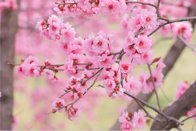 打樱花树下走过,花朵颤巍巍立在枝头,花枝弯曲出一个优雅的弧度,好像嘴边噙着的一抹微笑,清浅舒朗。