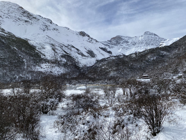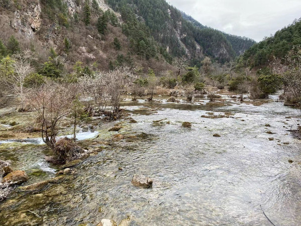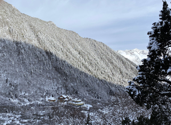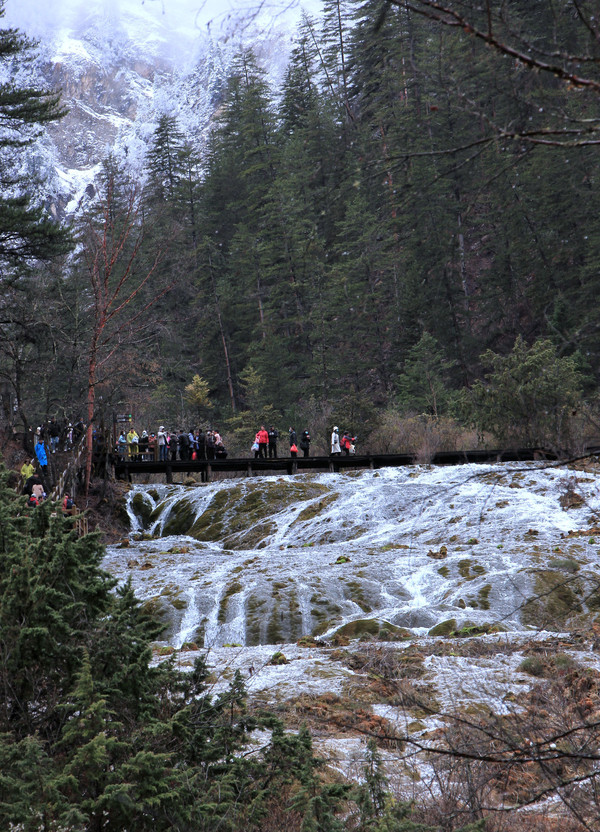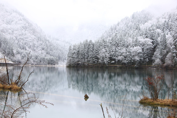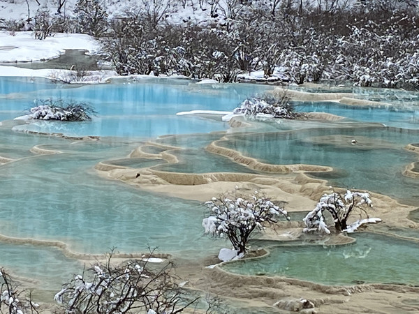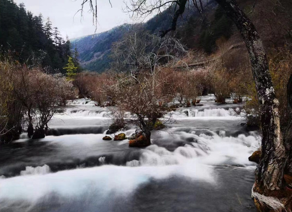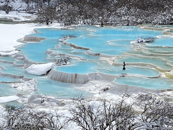 披上银装的箭竹海,使得九寨沟景区多了些素雅。