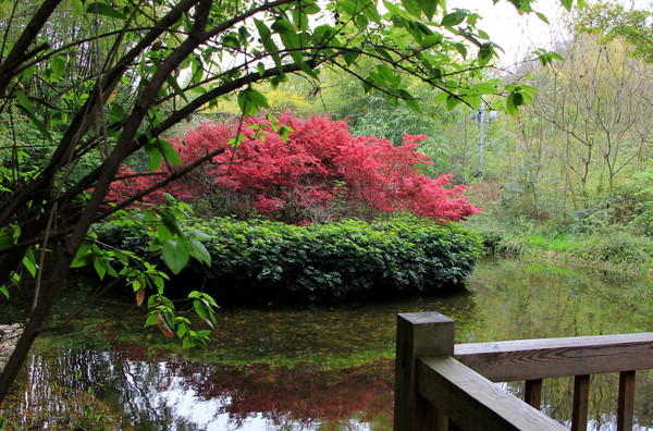 无论从那个角度看,都能看到清澈的水中植物与山的倒影。