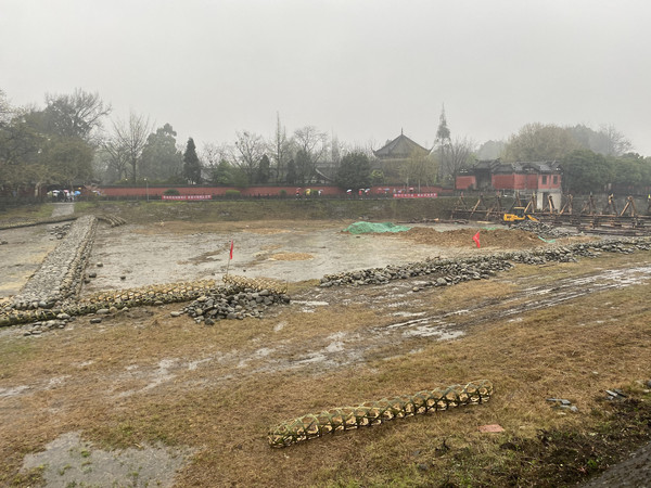 现在是3月份,江滩地面上的水位下降到已成为堤岸,工人们为防止下来的汛期,正施工码放着的层层竹楼,这种在防洪抢险时被广泛采用的千古流传之法,今日让我们有幸看到了!