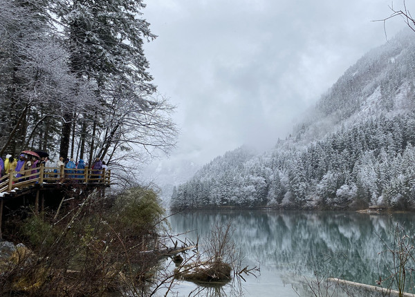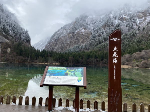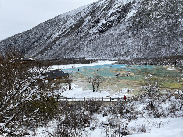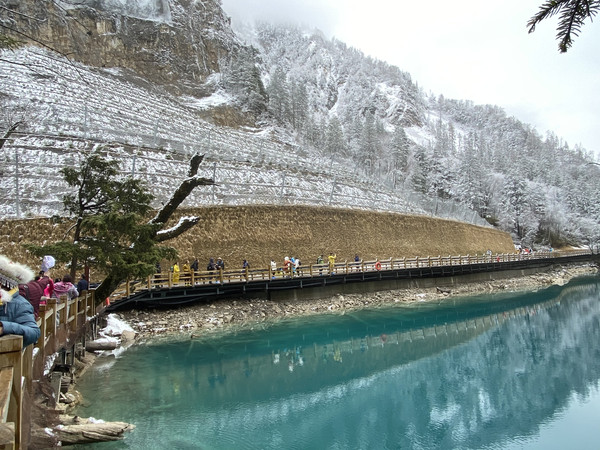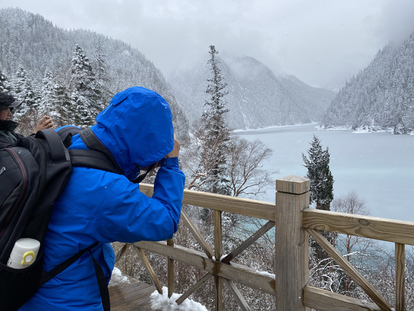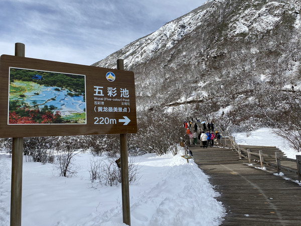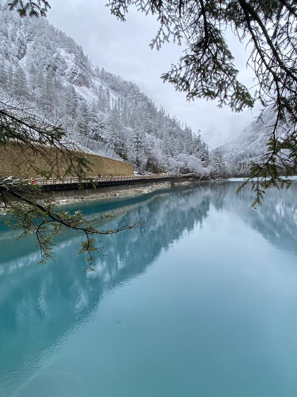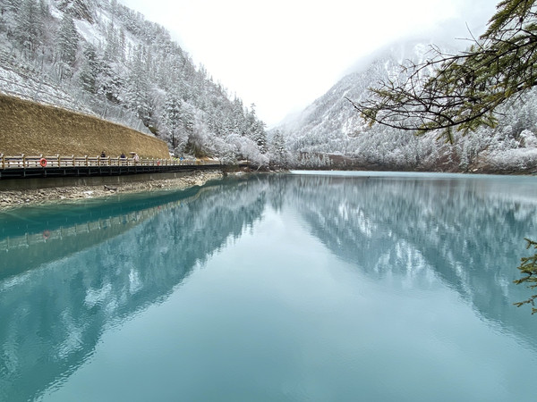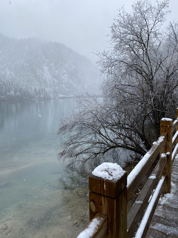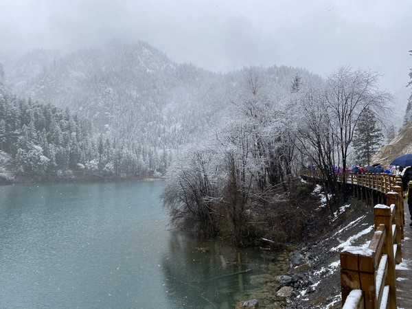 九寨沟风景区较为成熟,其游览栈道修得非常棒。所以在雪中漫步的我们,即可随心看景,又安心行路。