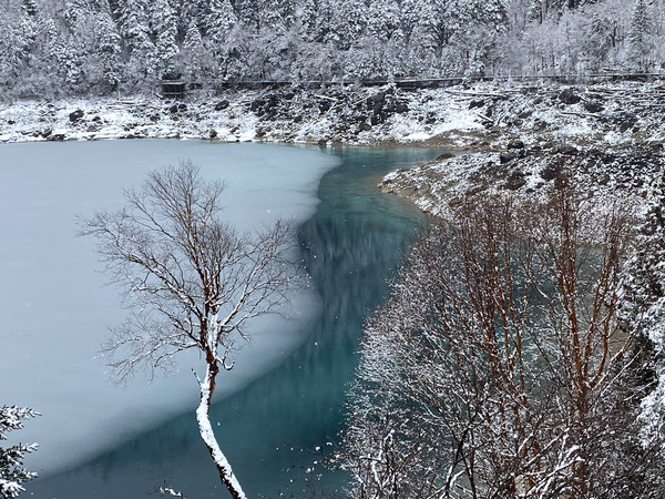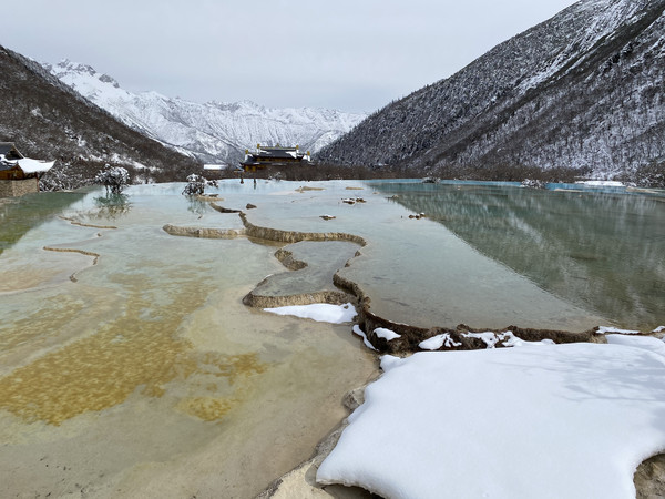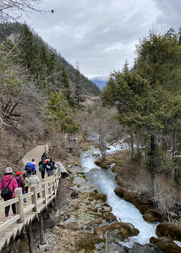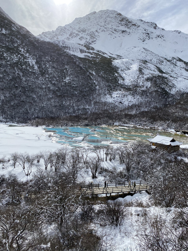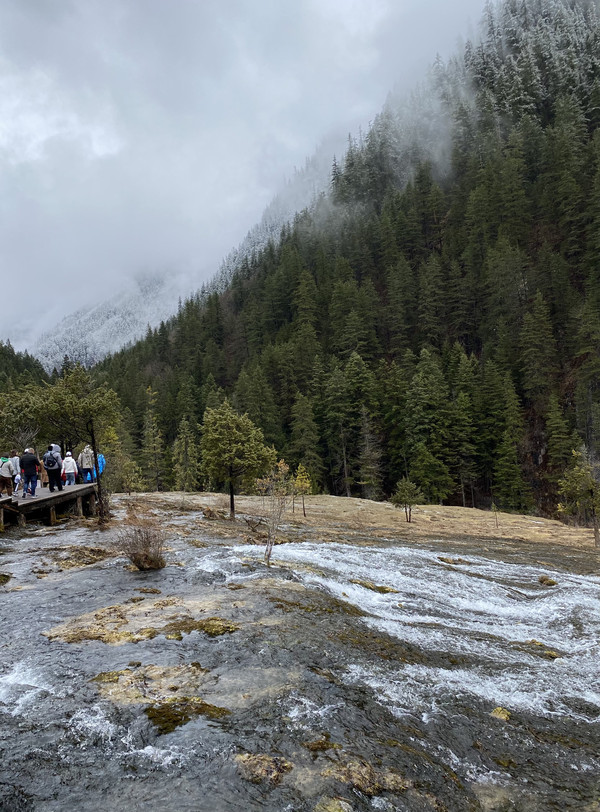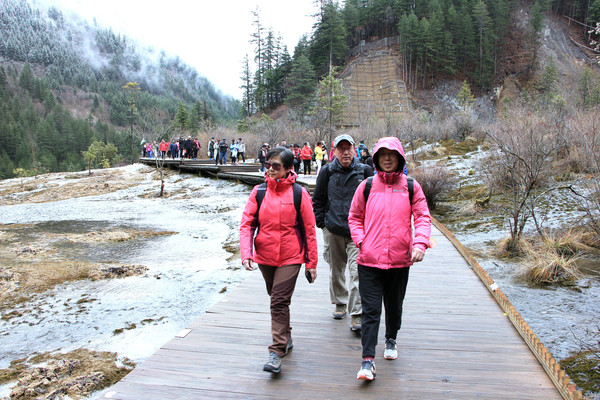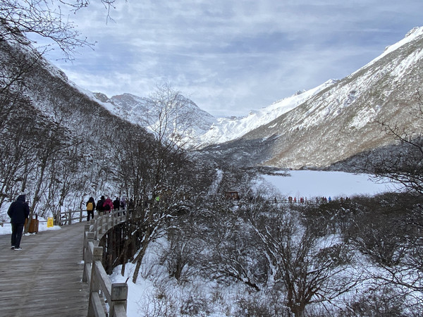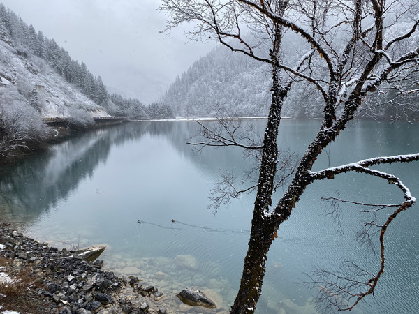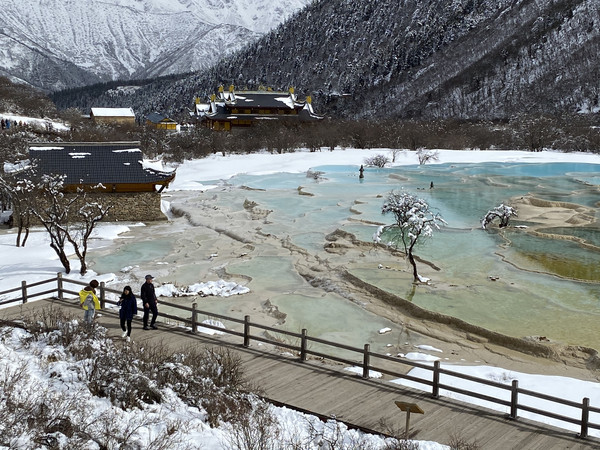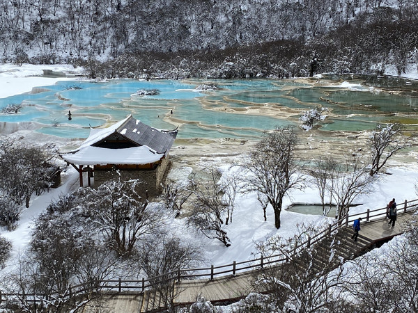 九寨沟风景区较为成熟,其游览栈道修得非常棒。所以在雪中漫步的我们,即可随心看景,又安心行路。
