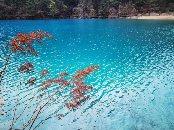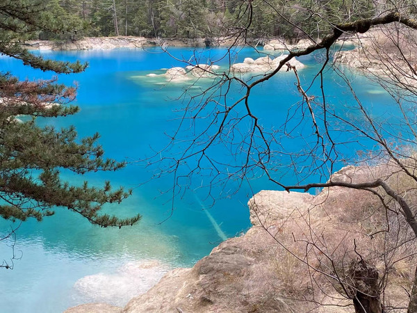 瞧这海子的颜色,恰似那孔雀羽毛之蓝!