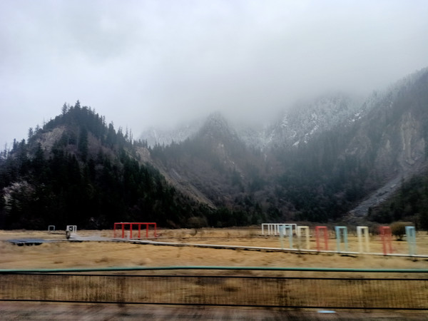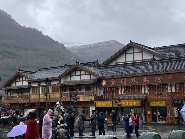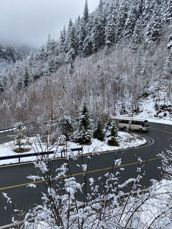 17:40分左右,遥望车外已是大雪纷飞,今天从早上出发经历了成都市内的阴天、都江堰景区的大雨、灌县古城的烟雨蒙蒙、到汶川县的雨止、茂县的晴天、松潘的雨加雪,一路上的风景就很丰富多变,让江南过来的我们目不暇接,一天就能感受川西的各种自然之美。