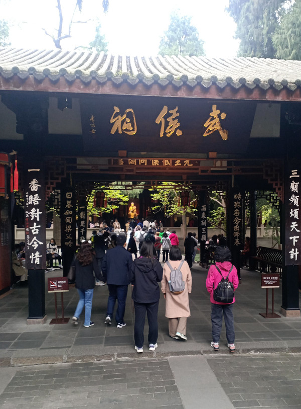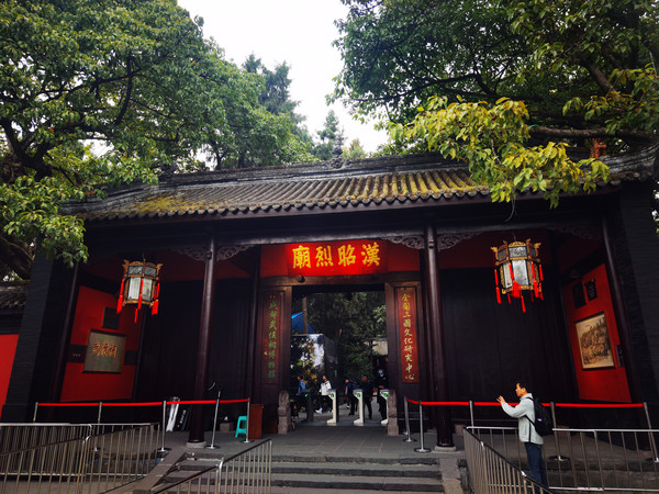 下午15:50我们到达武侯祠博物馆。武侯祠始于公元223年建惠陵时,是全国唯一的君臣合祀祠庙 ,也是全世界影响最大的三国遗迹博物馆。其中汉昭烈庙、武侯祠、惠陵、三义庙四部分是属于武侯祠博物馆的文化遗产保护区。