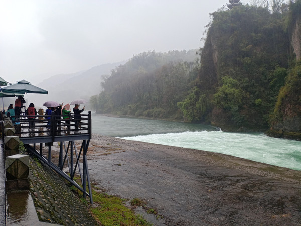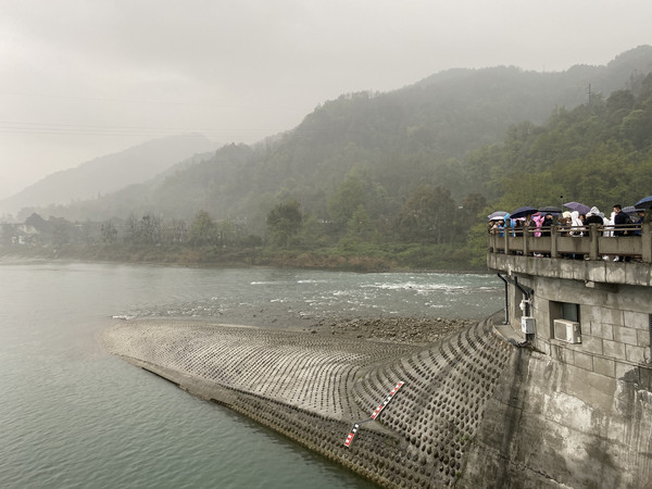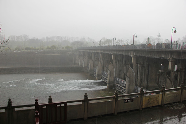 鱼嘴分水堤处岷江外江闸!此时约为9:00左右,天降瓢泼大雨,能见度极低。