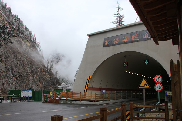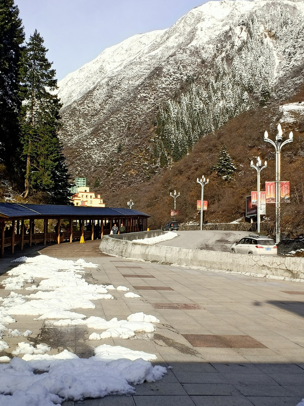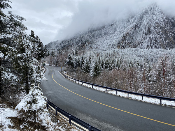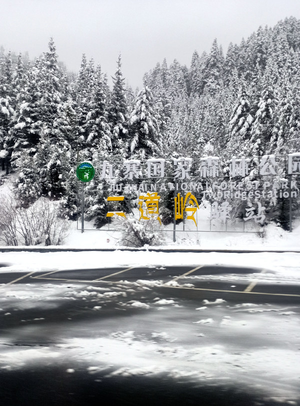 18:42快到九寨沟景区了,天公作美,雪停了下来!