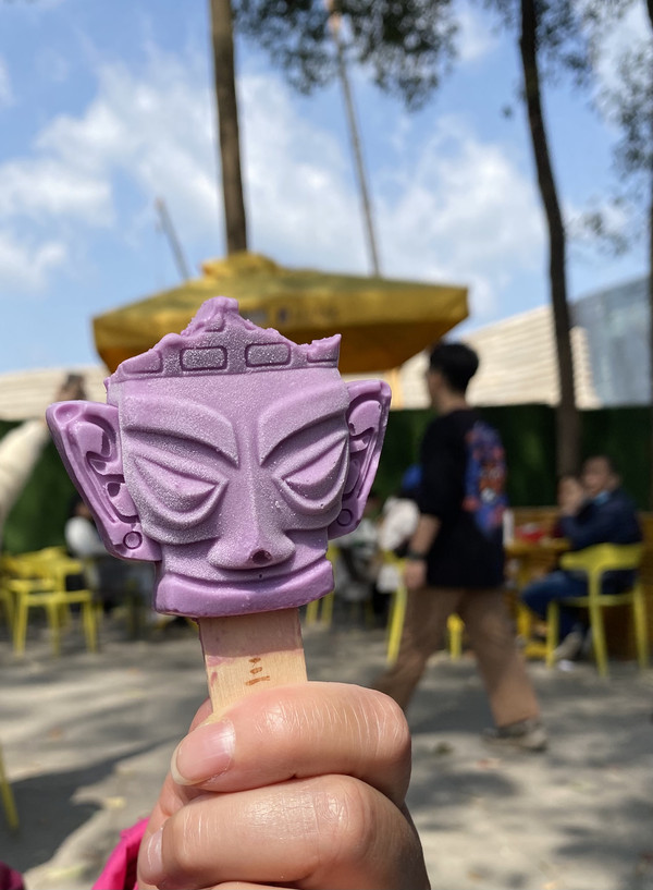 咬过的面具冰淇淋(15元/根),竟有着文物出土时的残缺之美。