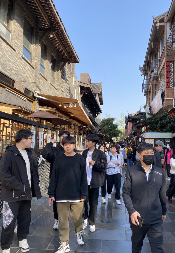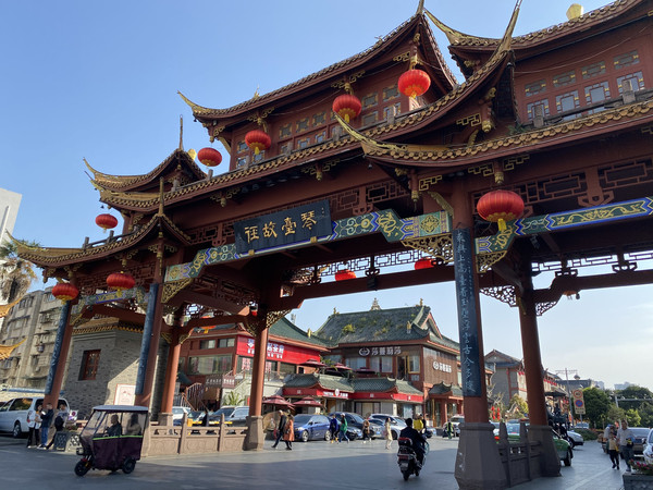 出文化公园至琴台路牌坊处·,查了下高德地图,知宽窄巷子就在附近,于是我们也在成都市内来一场CityWalk,步行至宽窄巷子。