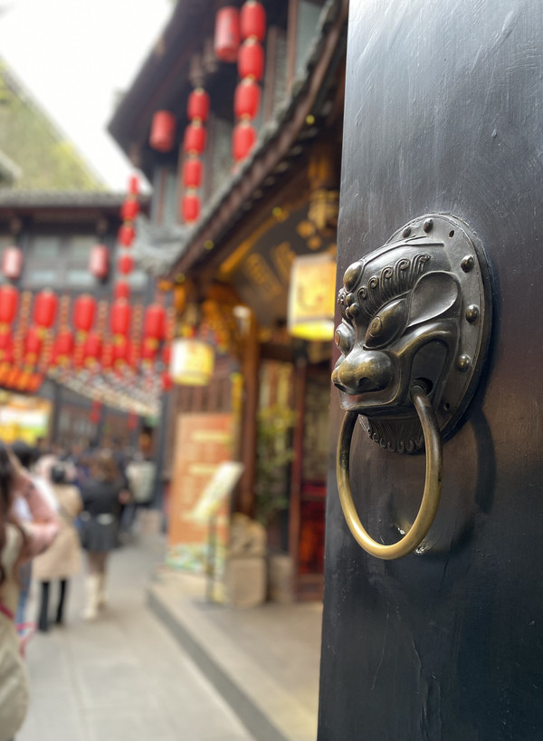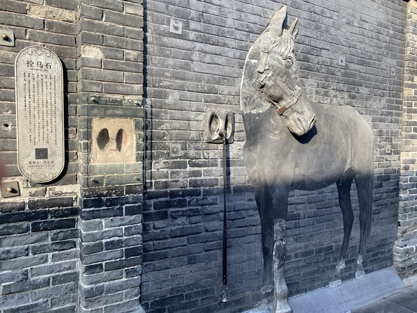 位于窄巷子32号门头老墙上的拴马石,离地约1.2米。已风化斑驳,它是宽窄巷子仅存的三个拴马石之一,因百年前这里曾是北方满蒙八旗及家属的居住地,有骑马出行的习惯。故此拴马石也是北方文化在川西的一种符号性的表现。