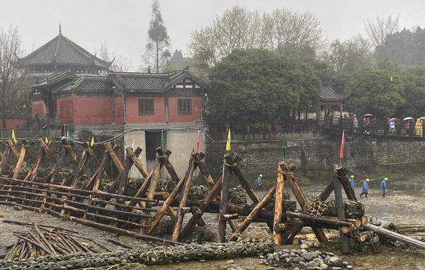 如今都江堰还在起着很大的作用,看着此处一排杩槎,我们也知道了其将要起的作用。