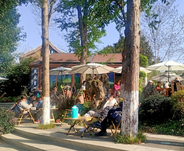 下午4点20左右熊猫基地、三星堆一日游结束,此时旅游大巴停在了成都市青羊区,靠近成都文化公园,听说文化公园最能体现本地人随性的慢生活,加之有小剧院可看川剧变脸等,所以我们也进去逛了逛。