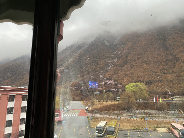 20230323一早,打开窗帘,心情愉悦,因看外面没有雨与雪,且群山被雾之缭绕,很美!