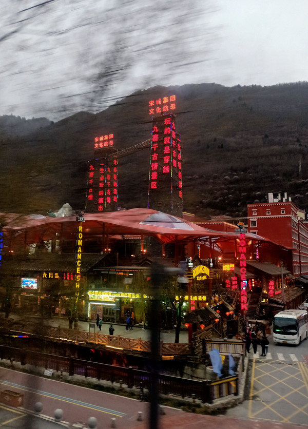 18:10进入阿坝州九寨沟县,外面是鹅毛大雪。