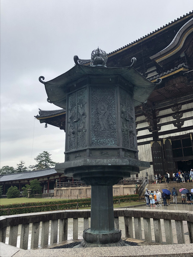 大殿前的通路是由不同颜色的石料铺成的,分别代表了同是信奉佛教的印度、中国等国家。看到我特别仔细地在欣赏这座极为精致的铜灯,会讲中文的日本导游知子小姐告诉我:当年日本战败后,美军曾经试图把这座铜灯当做战败赔款的一部分给带走,但当时的日本政府宁可多给钱,也坚决地把它给留了下来。