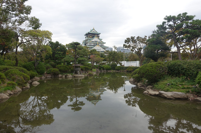 很有气势的大阪城,早些年间在战争中被毁,这是1931年复建的。这里春看樱花秋赏枫。唔,现在还早了点儿,枫叶未红……我之前就来过大阪城了,看人多,也就没再登城凑热闹了。