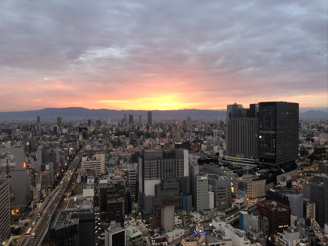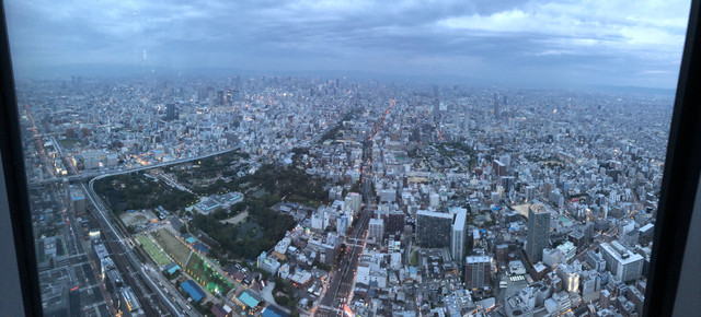 告别馆长先生他们,我们来到了号称日本第一高楼(300M 60层)的阿倍野大厦,站在顶层的海阔天空展望台360度眺望大阪。一日之间在侘寂古老的奈良和繁华现代的大阪之间穿行,仿若这低沉了的暮色一样,很迷幻不是吗?