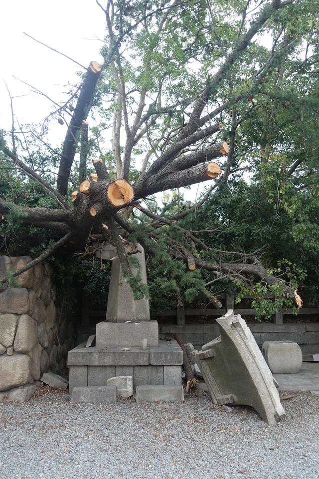 听说我这阵子去日本,很多朋友都问我:“今年几次的洪水、地震、台风对于日本影响大吗?”(2018年日本的确灾祸连连)这类问题。在我所到之处,几乎没发现有什么特大的毁损状况。这张照片拍摄于大阪城对面的丰国神社,可以看到此番天灾的痕迹。