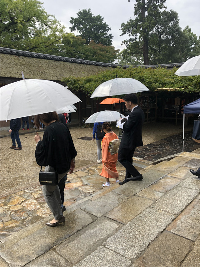 遇见到神社来为小BABY举行灌顶礼仪式的盛装的一家人。