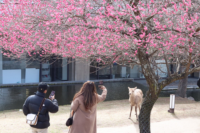 3月上旬,奈良公园的梅花开了。终于拍到了“梅花鹿”(梅花和小鹿的合照非常可爱)!