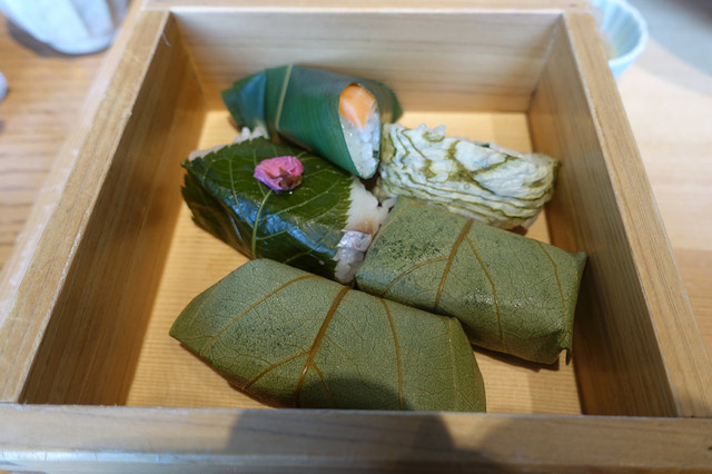 奈良的吉野地区是山,很久以前,住在山里的人们为了让寿司长时间保存,开始使用柿子叶。