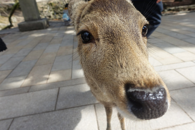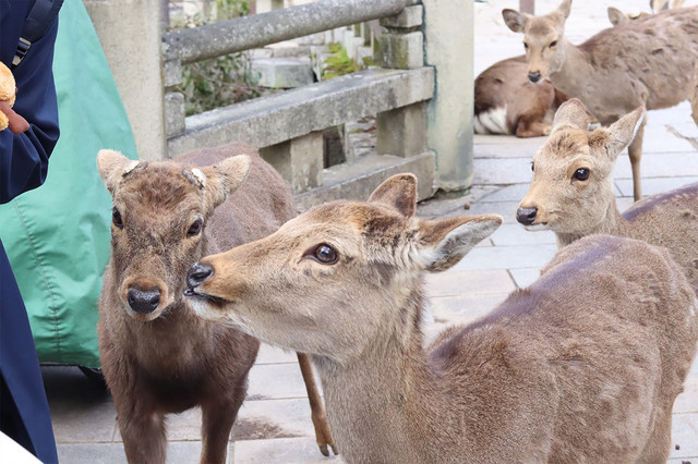 第一次来奈良公园的外国人,对冲过来的鹿会感到害怕,吓哭小朋友的场景也是经常有的(笑)。
