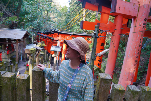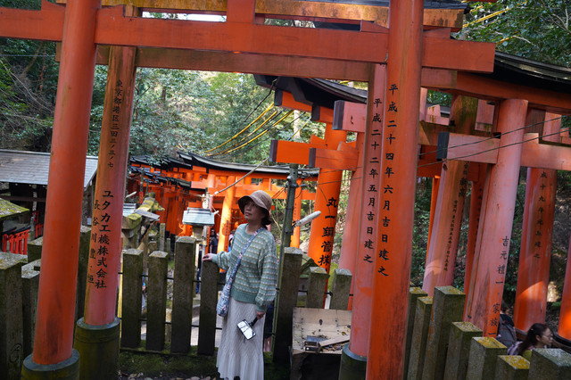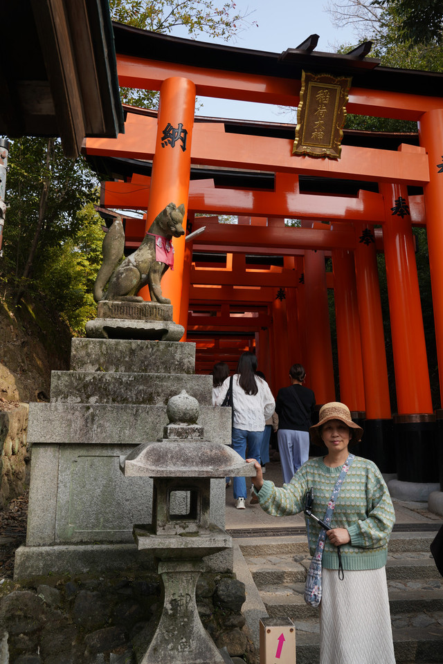 稻荷神是农业与商业的神明,香客前来祭拜求取农作丰收、生意兴隆、交通安全。它是京都地区香火最盛的神社之一。鸟居长廊很好出片,整个行程有一点向上的山坡,全部走完的时间大概40分钟。走走拍拍需要更长的时间。