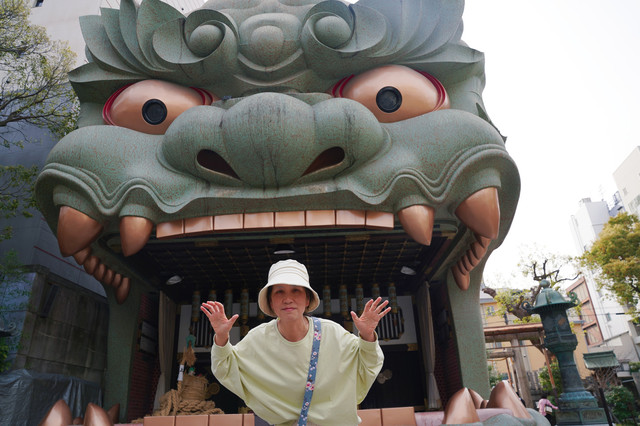 社内较惹人注目的是面向入口处的巨大狮子殿,张着金牙大口,迎接进入神社的参拜者们,非常震撼!仔细一看,巨大狮子头的口内是个舞台,眼睛是灯光,鼻子是音响。每年庆典之时都会在这个舞台上表演精彩的节目。