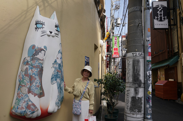 晚上经过酒店前面的地下通道,店铺林立,吃的、穿的,走了心斋桥、道顿堀,在高举双手的马拉松运动员广告牌前拍摄良久,各国游客摩肩擦踵,比划着留影。待回到酒店时,在楼下的7-11超市买了一大袋食品。这里不得不说一下超市,大量的食品一样样品尝,足以填饱肚子,所以我们每天晚上回酒店会带一袋子食品,一般大概2000日元,100人民币。