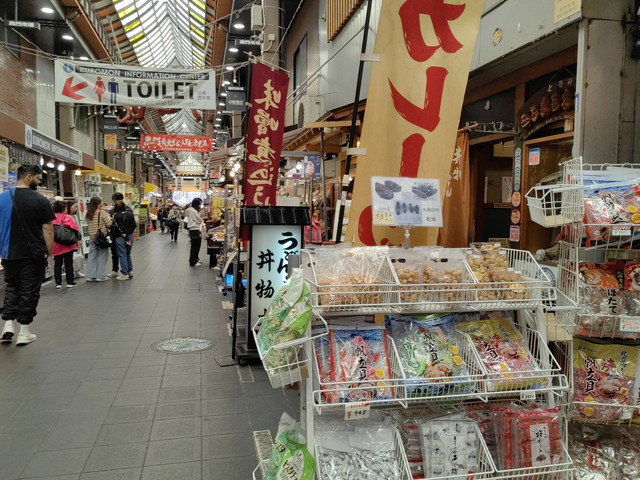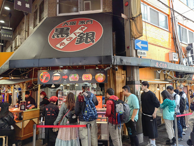 大阪,由于是众多日本经典料理(大阪烧、炸串、章鱼小丸子等)的源发地,而被日本人视为“日本的厨房”。而黑门市场,又被称作“大阪的厨房”。600米长的市场挤着近200家的商店,现在也是海外游客必去的景点之一。