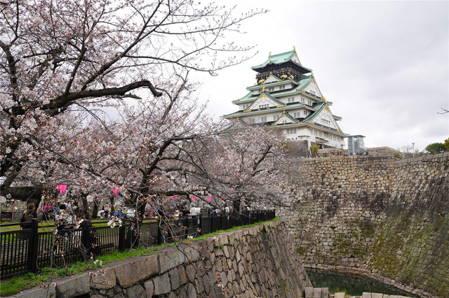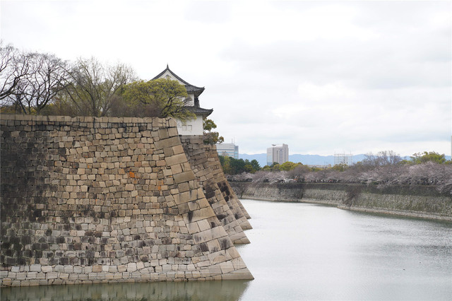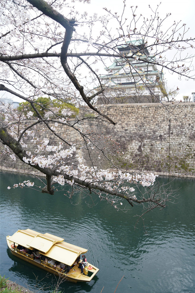 大阪市区二大赏樱地——大阪城公园和造币局樱花大道。大阪城公园被各种植被包围,种植了好多树木。西之丸庭园内樱花遍布,春季还可以赏夜樱。大量巨石堆砌的石垣是德川大坂城固若金汤的象征。公园内耸立的大阪城天守阁非常有名,登上天守阁的顶层,可以尽情俯瞰城市全景。地铁森之宫出站。
