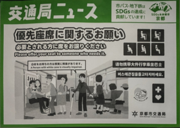 京都的轨道交通貌似比较复杂, 关西轨道交通由多家私营公司组成,其中最大的要数JR西,同一条线上不同地铁的票价不同,车厢也有区别(如专门女性车厢),所以对初来 关西的旅客并不友好,需要根据导航仔细辨别所乘的地铁班次,另外换乘站还要特别注意所乘地铁的站台位置,尽管日语中大部分汉字都能看懂,但刚开始寻找还是有些不适应。乘坐轨道交通也有不少优点,如路途短时价格190円起步,甚至比公交还便宜,一些旅游点会用中文播报信息,换乘一般在站内就能进行(梅田站除外)。