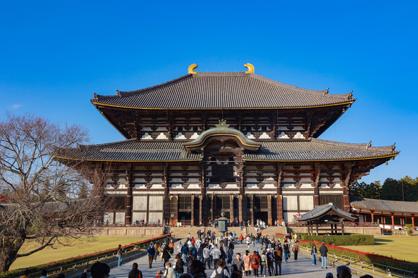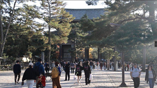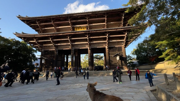 拾阶而下没多久便到东大寺,大佛殿至今任然为世界最大的木结构建筑,里面安放着大佛像。