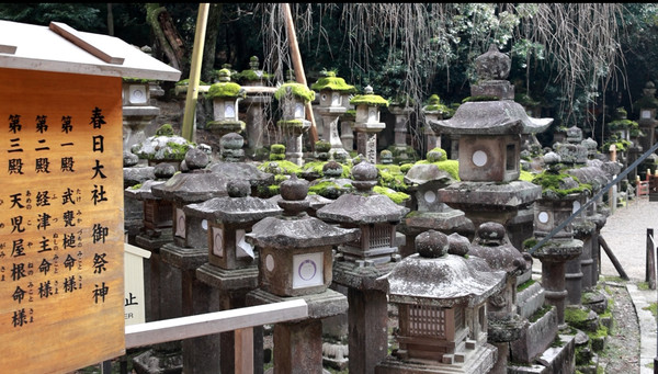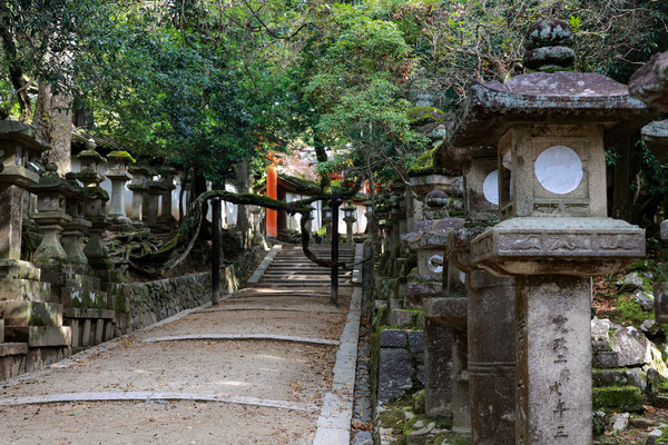 春日 山被 春日大社 视为神山,几百年以来禁止砍伐,所以这里的原始树林和 大社 一样被列入文化遗产。走进原始树林可见不少具有年代的榭树、枫树等粗壮树根裸露在地面,树干粗大枝繁叶茂。到万叶植物园就能看见路边的石灯笼,据说 春日大社 有3000多个石灯笼和吊灯笼也是这里的特色。