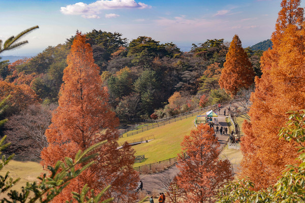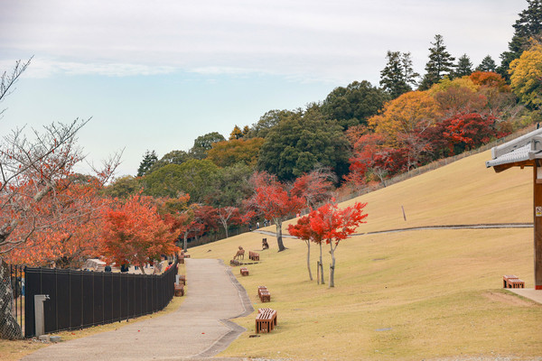 出大殿朝北步行1公里,就到达若草山麓,途中水谷神社附近有几家餐馆也很有特色,其中的水谷茶屋在大众点评上排列前茅。经过台阶往上就是若草山麓,山麓上围栏着一个草地斜坡,门票150円。