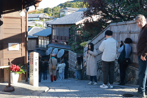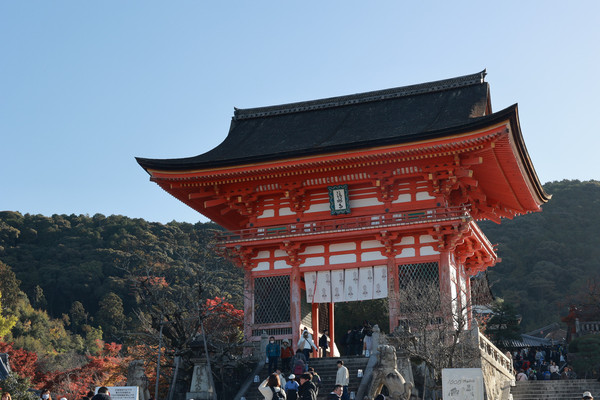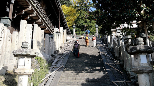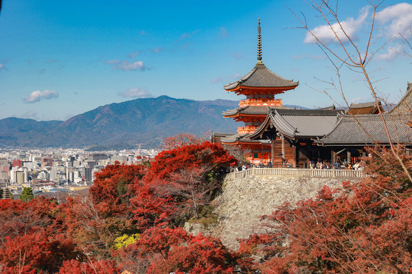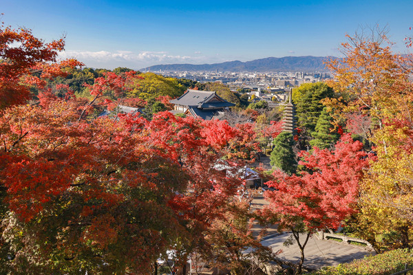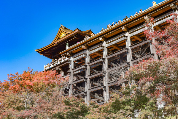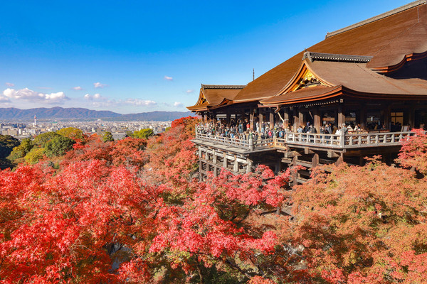 坐落在音羽山的清水寺是最著名的景点之一,人气也最旺,所以到清水寺有看人头景点戏称。主殿建在巨大立柱支撑的 高台 上,露台也是人群最密集的地方,可以鸟瞰 京都 市区,也是清水寺标志景观,通过挤满人群。露台下红叶漫山遍野,清水寺景区内有多处绝美景观,最佳拍摄主殿的位置是奥之院的亭台上,来到此处即使人群拥挤,也需耐心等待见缝插针,因为太值得来此一睹风采。