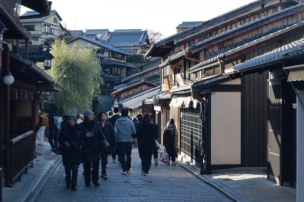 尽管清水寺、伏见稻荷 大社 经常处于人流如织的状态,因名气所在还是不能放弃。第一站去清水寺是希望尽量在人潮高峰前赶到,所以早上8点出发,先乘公交到达袛园(通常游玩线路是傍晚时分观赏完清水寺的日落和灯光,然后经二三年坂到袛园)。花见小路不见人流如织的热闹,但街道环境清幽、那些规划整齐挡有垂帘的茶屋很有当地特点。途径八坂神社,这里虽未列入这次行程,但还是忍不住进去转一圈。八坂神社供奉的平安京守护神和其他神明,能祈愿很多方面,其祭祀在当地很有名气,夜晚灯笼映照下的神社更加令人难忘。