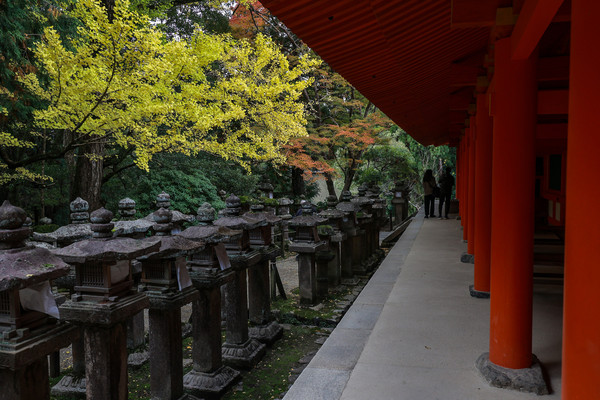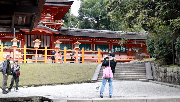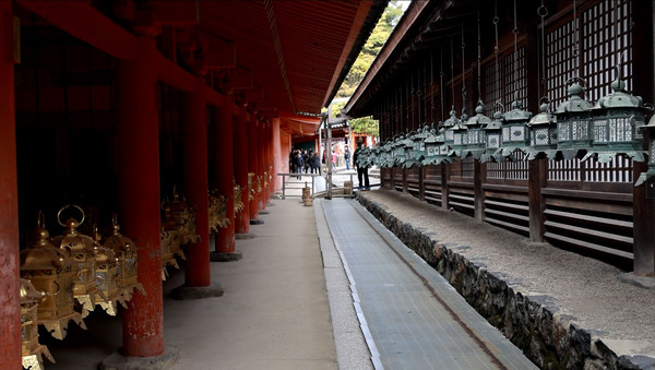 春日大社 大殿是最主要的景点,由不规则的四边形回廊围成。朱红漆白墙和扁柏屋顶,四处悬挂的铜制灯笼,据说灯笼节时全部点亮十分壮观。 春日 大寺的外围是免费的,而参观本殿门票500円。其实对拍照打卡只在外围转转即可,而要深入了解文化历史的可进入参观。