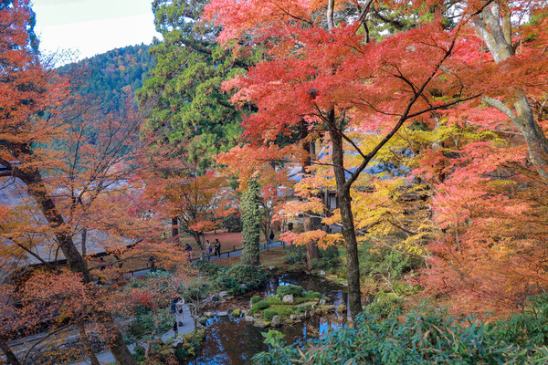 由于情况变化我们改变原来的行程,放弃参观第二天已经预订的无邻庵,将永观堂和南禅寺的游览计划提前一天。所以一早便乘车来到永观堂。位于若王子 山西 麓的原贵族庄园,公元853年赠送给一位僧人后来成为净土宗西山禅林寺派的总本山。永观堂的枫叶最为知名,1000円的门票就说明这里非常值得参观,而周末参观人又特别多,排队购票进入院中,园内小路两边种满枫树,许多建筑有带顶的连廊相连,据说夜晚点灯时更显梦幻。不必随人流挤往长廊,没有观赏侧面的阿弥陀佛,只在园内绕行一周便从扑面而来的红色世界中感受到红枫的魅力。放生池里的硕大鲤鱼,中央小岛以及红枫包裹的整个庭院让人目不暇接。