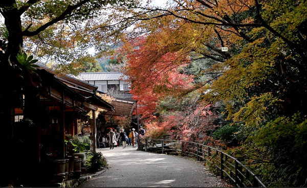 贵船神社还是三千院两者选一,我们选择了后者,可能期待观赏更美的枫叶吧。乘车前往三千院(17路有特/系统两种选择,其中一条线路是半路上要弯一下国际会馆),类似我们的郊县长途车,每站的票价是不一样的,所以从后门上车要先刷一下卡,然后到目的地再刷卡结算。途中上来一群游客其中几位国人正交流刚才的游园经历,才知道是刚从琉璃光院参观后出来。琉璃光院需要提前预约,但100元人民币门票只为了挤在寺院内借助镜子拍摄廊外的风景,我们计划旅程时就决定放弃。终点站就是三千院但还需要走一段上山路,不过这段山路景色也很美。