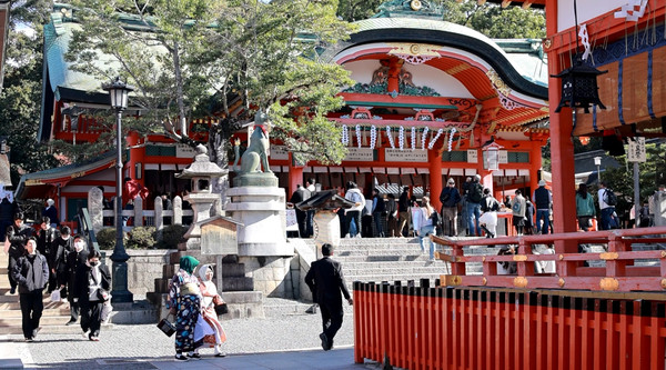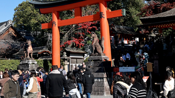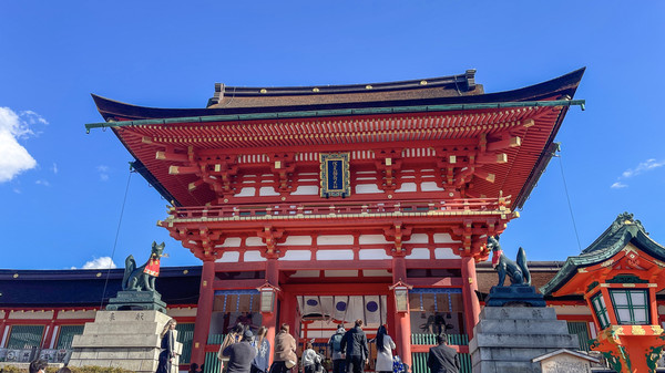 伏见稻荷 大社 是 日本 稻荷总本社,供奉的稻荷神是农业与商业的神明,香客前来祭拜求取农作丰收、生意兴隆、交通安全。狐狸被视为神明稻荷的使者,大门两端和鸟居前都设有狐狸雕像。