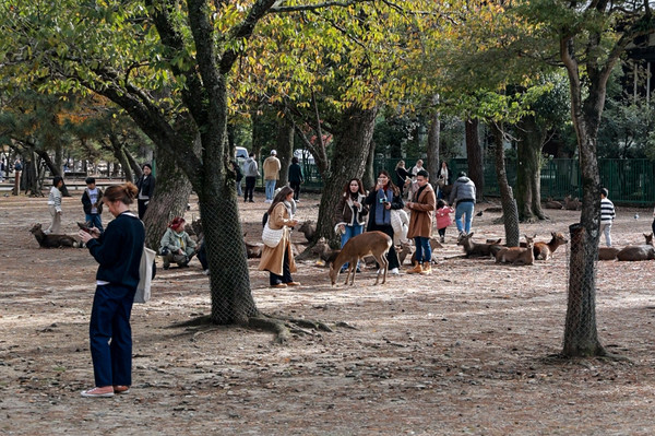 由于当天游览的景点多线路长,停留时间不能太长,所以没有寻找五重塔等景点,就沿路到了第一个鹿比较集中的空地开始尝试喂鹿。这里是最近的鹿集中的地方,人也比较多,投喂热身后继续出发。